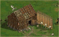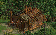 仓库是用来储存木材的建筑。农民砍伐木材,保存到仓库中。猎人也可以将打猎获得的食物储存到仓库中。